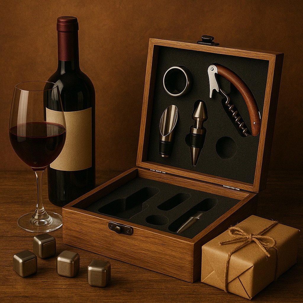 Το να δίνεις κρασί είναι άσκοπο. Το να του δώσεις κάτι για να το απολαύσεις καλύτερα είναι εξίσου σημαντικό. Ένα σετ αξεσουάρ για γευσιγνωσία κρασιού συνδυάζει τα απαραίτητα—τιρμπουσόν, κόφτη μεμβράνης, μηχάνημα αλουμινίου, πώμα και δαχτυλίδι—σε μια θήκη που θα ταιριάζει τέλεια στην κουζίνα ή την τραπεζαρία. Για τους περίεργους που θέλουν να βελτιώσουν την αντίληψή τους, ένα σετ με γυαλιά γενικής χρήσης και αεριστή είναι μια εξαιρετική αφετηρία. Οι αισθητικοί θα εκτιμήσουν προσεκτικά σχεδιασμένες αφίσες της περιοχής κρασιού, οι οποίες θα διακοσμήσουν ένα κελάρι, το σαλόνι ή το γραφείο. Φροντίζουμε τη συσκευασία και την προστασία, ώστε η απόλαυση να ξεκινά μόλις ανοίξει η συσκευασία.